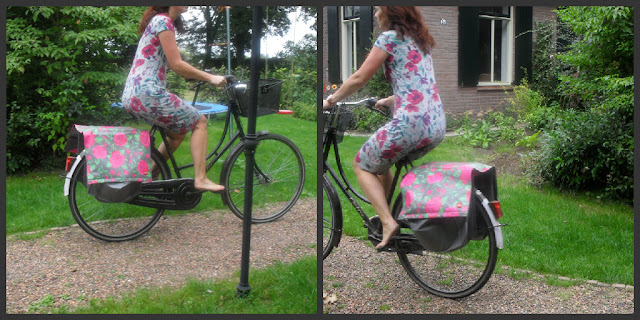 Meestal helpt het als ik de rok zo vouw dat hij deels over het zadel gaat, en daar zit ik dan bovenop! Voor mij geen opwaaiende zomerrokken.
