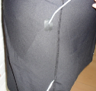 De makers van Goretex informeerden me dat de tailleband expres zó gemaakt is dat je de band om kunt klappen zodat je minder druk op je buik hebt, of juist hoger zodat je buik meer bedekt is.