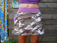 Omdat het rokje verder heerlijk zat, besloot ik er mee naar een coupeuse te gaan, en die heeft voor 10 euro een knoopsgatenelastiek in de tailleband gezet, en nu zit het prima.